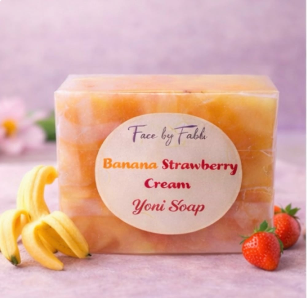 Indulge in a deliciously smooth clean with Face by Fabb banana strawberry cream Yoni soap, a gentle feminine soap that combines the sweetness of ripe strawberries with creamy softness of banana. This luxurious blend creates a soft, comforting scent that feels playful, feminine and irresistible.