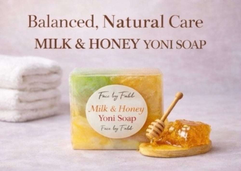 Gentle, comforting and beautifully nourishing face by Fabb milk and honey Yoni soap wraps your feminine care routine in soft sweetness and warmth. The creamy blend of smooth milk and golden honey creates a delicate, comforting scent that feels clean, cozy and indulgent.